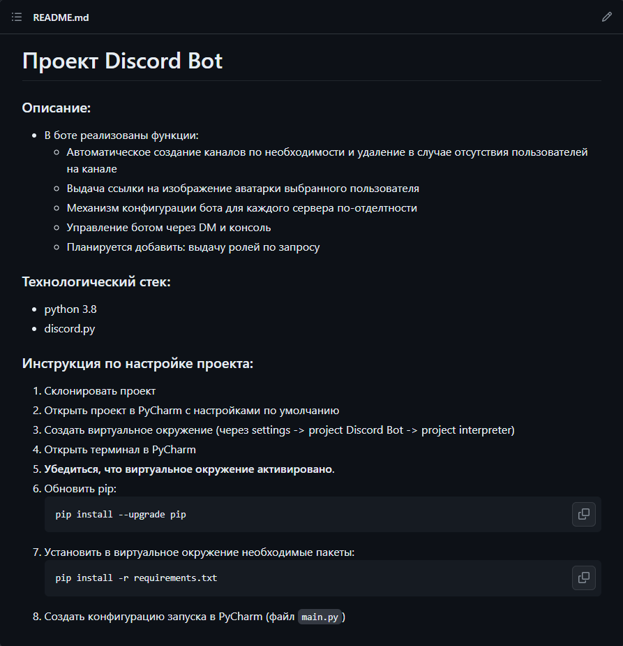 Собственный бот для автоматизации некоторых функций на Discord сервере. Стек: Python, discord.py